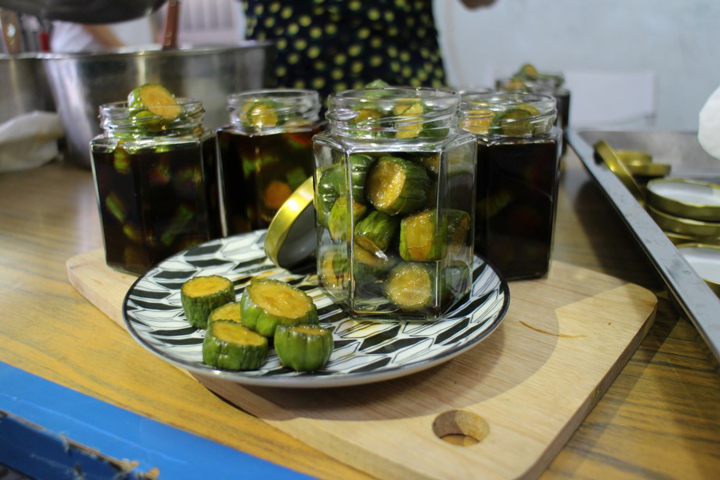 1080720新港鄉月眉社區的居民再度與來自印尼駐村的大專生們合作,透過「農村再生計畫」所開辦社區農產品加工技術課程一同交流學習。此次操作的為手工豆腐、南瓜...