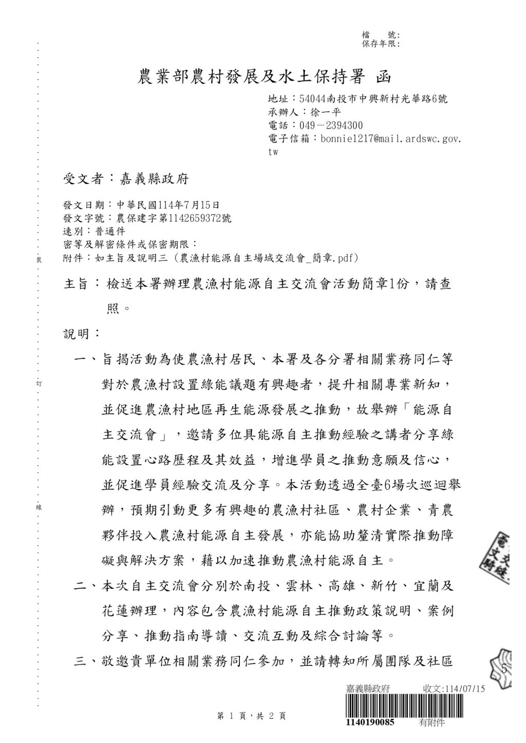 ∣主辦單位∣:農業部農村發展及水土保持署
