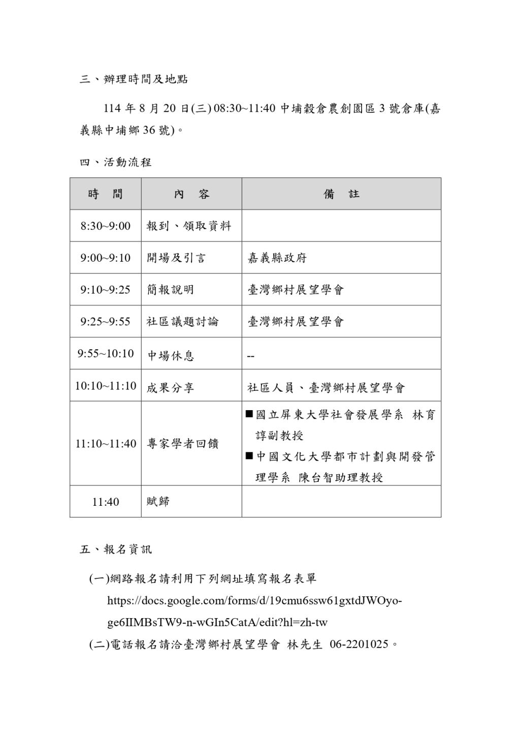 ☎️電話報名請洽臺灣鄉村展望學會 林先生 06-2201025。