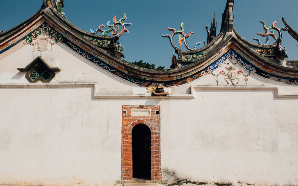 騎著腳踏車悠遊社區,在拐彎之處,會突然遇上這整面壯麗的剪黏交趾陶花牆,春天白花燦爛、夏季綠意盎然、秋季結果、冬季枝條蕭索,彷彿是繽紛的人生四季,感受工藝人一片片細膩疊合的巧心。