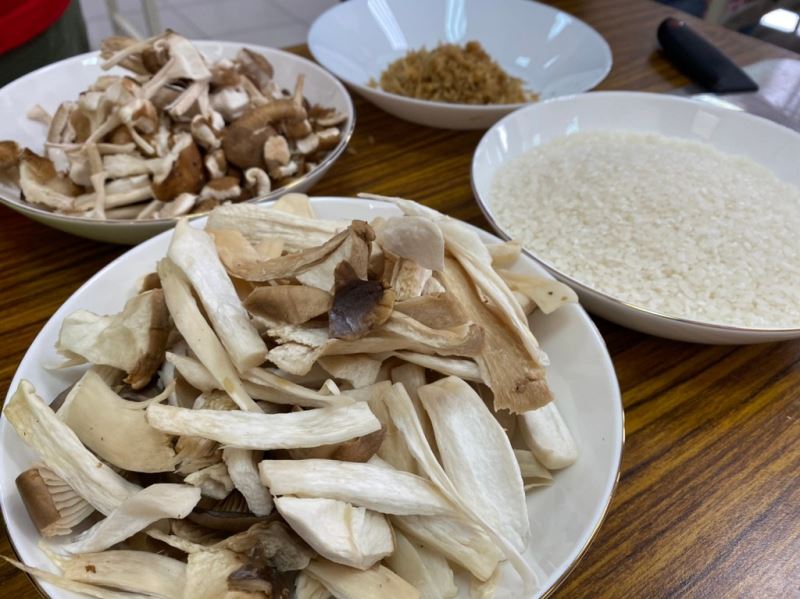 今日研發特餐:茶油百菇飯/茶水糙米雞湯/鮮茶包仔粿