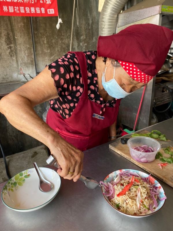林腳社區位於嘉義縣與雲林縣交界處,農產品主要有稻米、花生、小番茄、高麗菜、花椰菜等,而此次農產加工培訓,著重於過盛農作物經加工保存,使盛產作物能於颱風期及非產期時能售出,以減少農民損失,並透由社區風味餐培訓,研發出不同的特色料理,讓社區能農產價值有所提升。