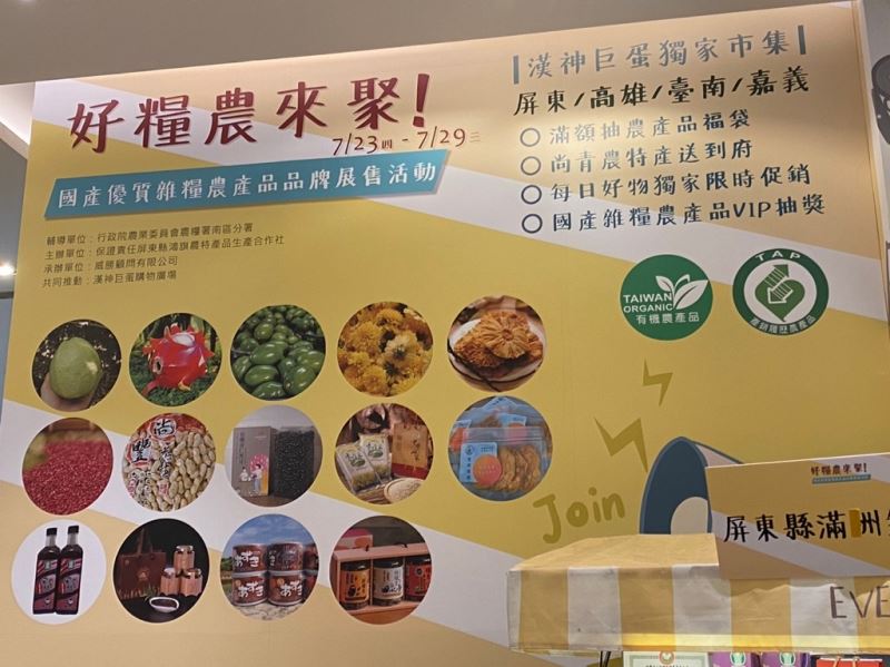「好糧農來聚」是農糧署與高雄市漢神巨蛋購物廣場合作,嚴選來自屏東、高雄、台南及嘉義農特產品的展售活動。