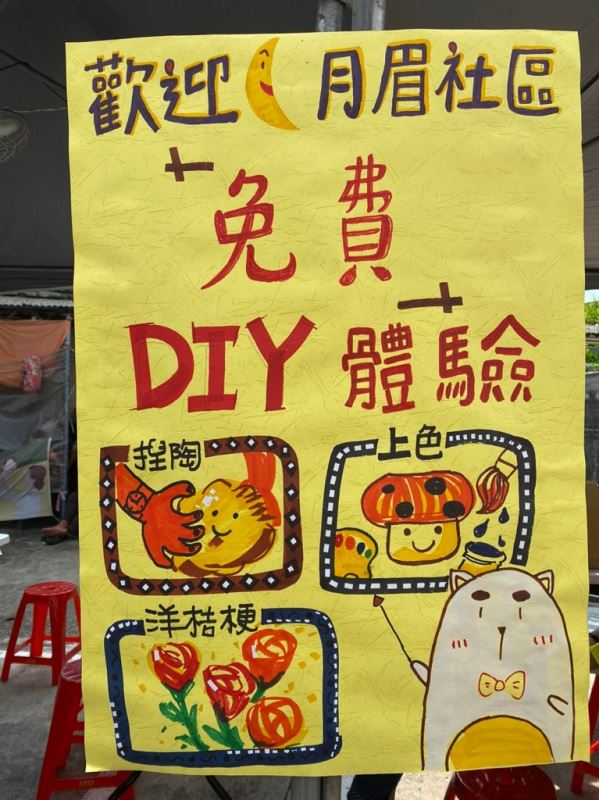 為推廣社區產業,透由此次活動,結合社區舞蹈表演、摸彩箱、行動圖書館、免費交趾陶DIY、免費桔梗花等多項互動,帶來眾多人潮,現場也有多項社區農特產品販售,為此次計畫揭開歡樂的序幕,同時將月眉文化產業推廣出去。