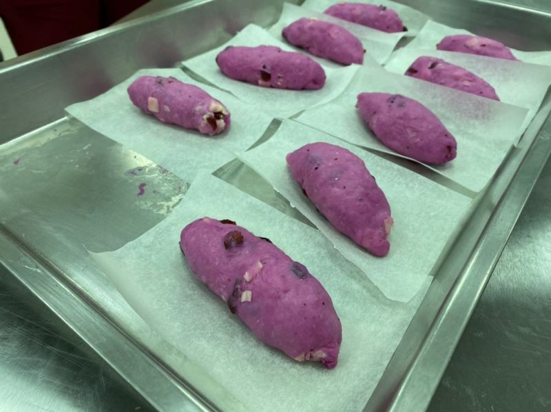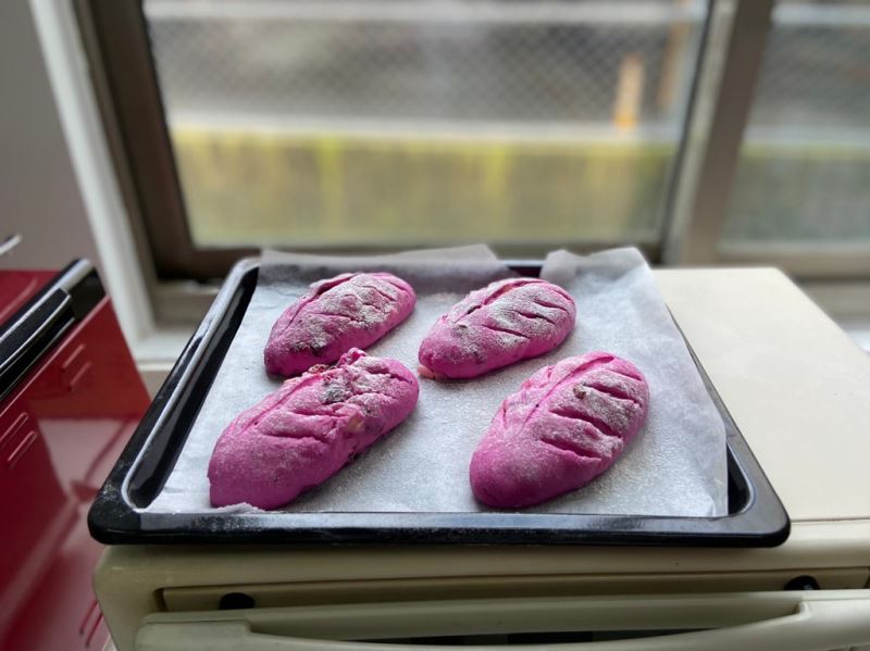 繼上次的鳳梨堅果麵包之後,社區新推出「紅龍果蔓越莓乳酪麵包」震撼大家的味蕾~