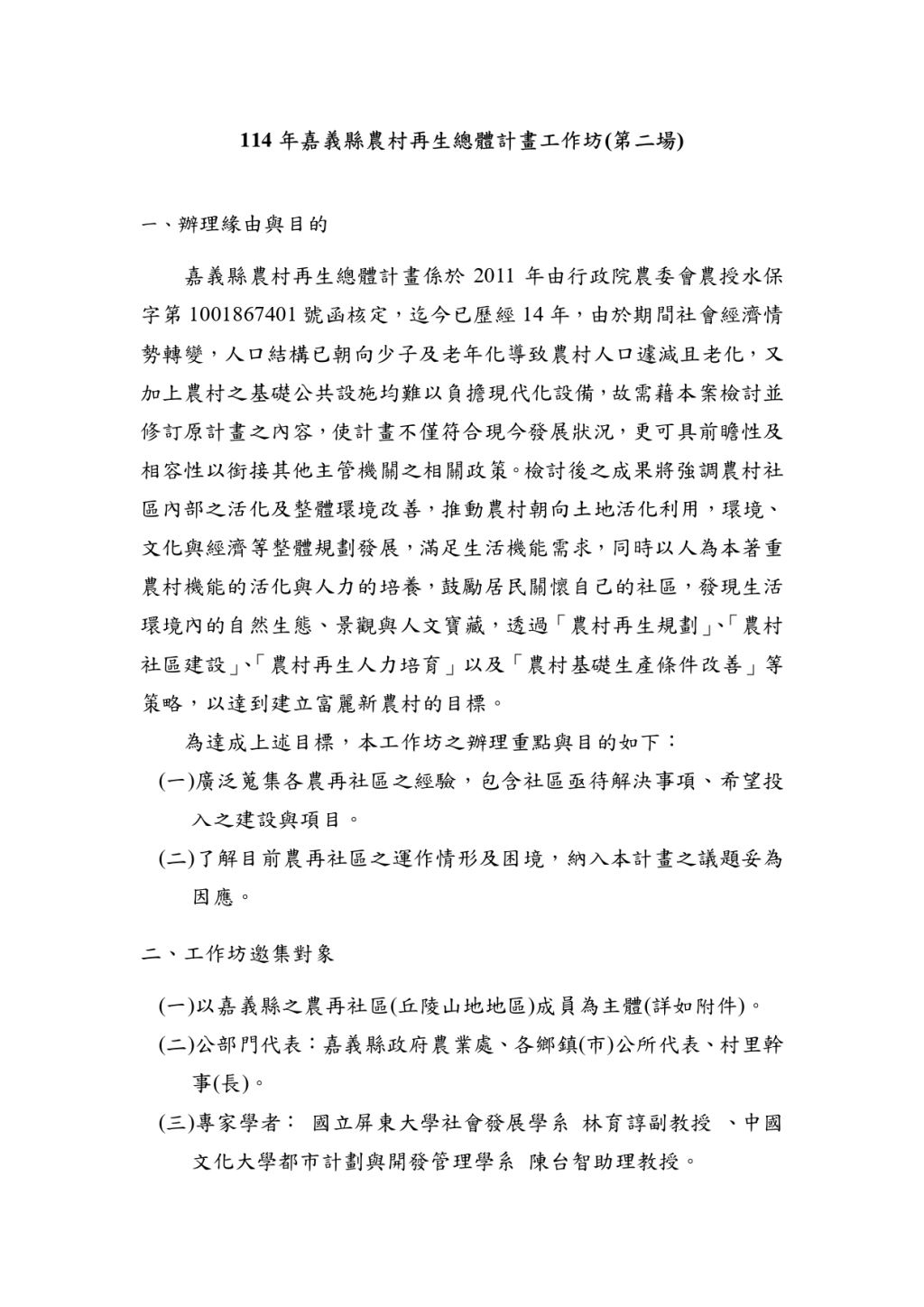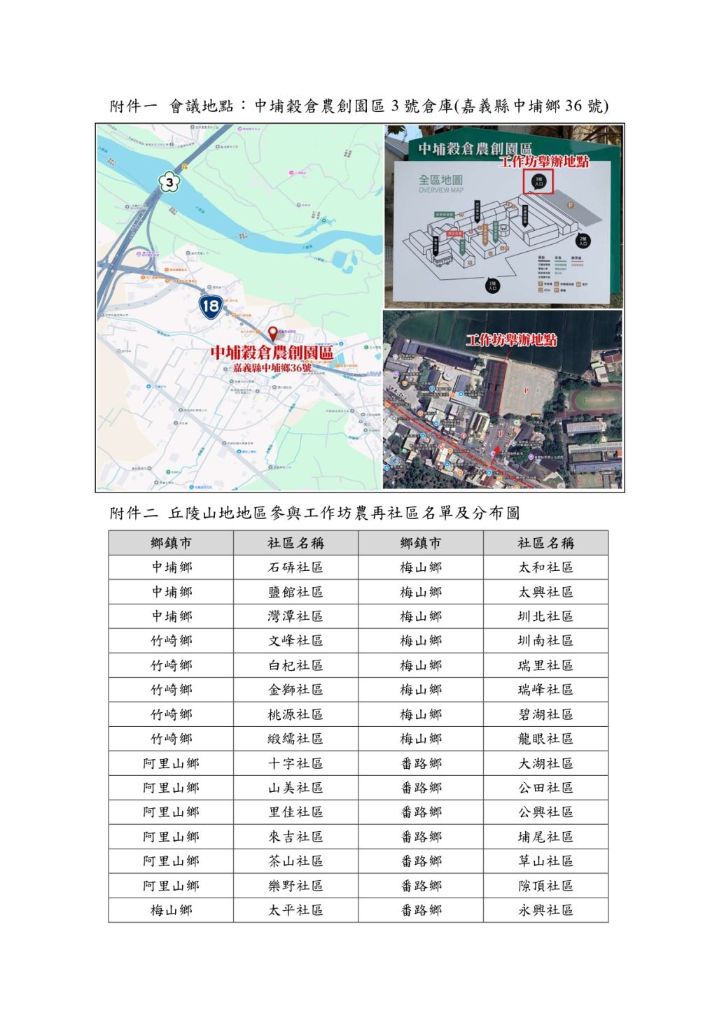 (一)以嘉義縣之農再社區(平原區)成員為主體(詳如附件)。