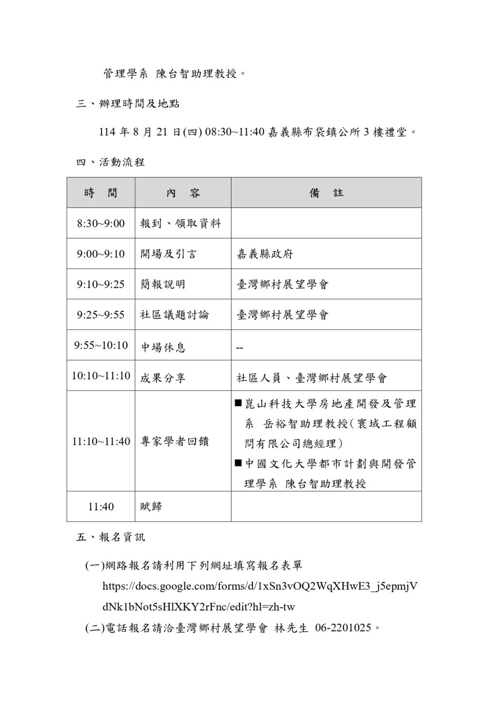 ☎️電話報名請洽臺灣鄉村展望學會 林先生 06-2201025。