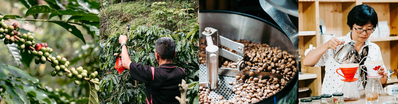 相較茶葉要趕在三天內採收,咖啡豆的採收期有一週的彈性,手工採摘回來的發酵過程最為重要,是影響風味的關鍵,這裡常見的處理法有水洗和蜜處理兩種,蜜處理可以喝到紅棗和桂圓的香氣,尾韻帶出紅茶感; 水洗的尾韻會有月桃的香氣,放涼一點,口感會變酸,皆有一番風味!